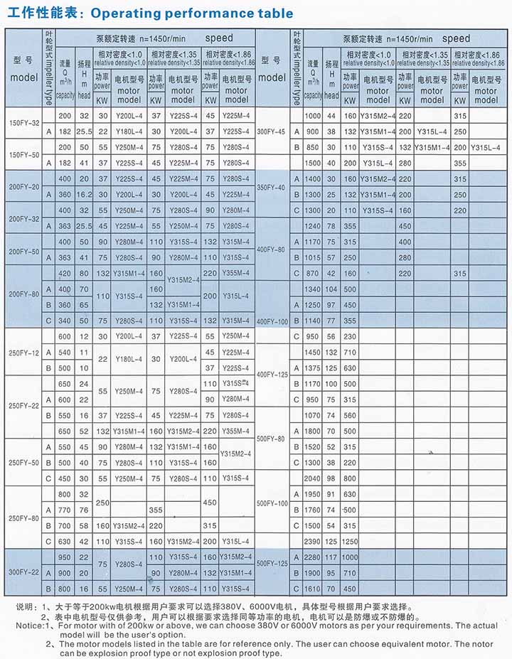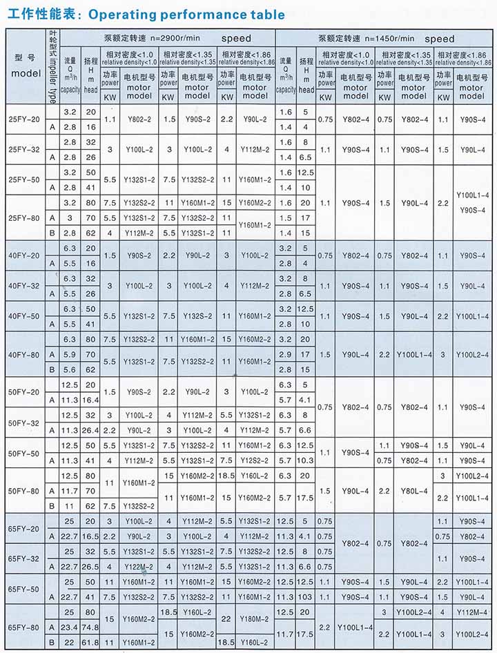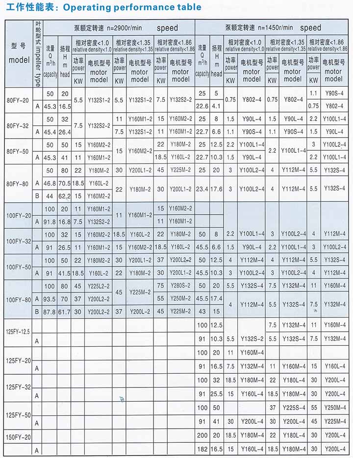 根據(jù)所輸送介質(zhì)的不同,F(xiàn)Y型立式液下泵接觸液體部分的材質(zhì)可選用鑄鐵(用符號(hào)H表示)、鑄鋼、1Cr18Ni9Ti(用符號(hào)B表示)、1Cr18Ni12M02Ti(用符號(hào)M表示)、304、304L、316、316L、904、Lewmet合金、20號(hào)合金等材料制造。