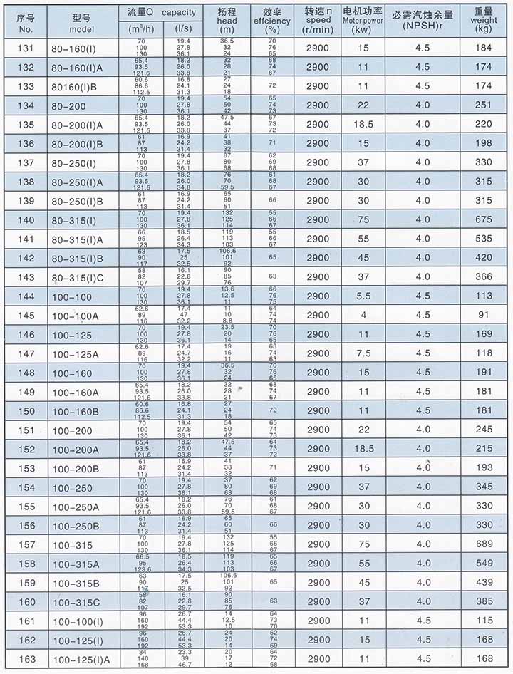 概述: ISG、IHG、IHW、ISW型系列單級單吸管道離心泵,是本單位科技人員聯(lián)合國內(nèi)水泵專家選用國內(nèi)優(yōu)秀水力模型,采用IS型離心泵之性能參數(shù),在-般立式泵的基礎(chǔ)上進(jìn)行巧妙組合設(shè)計而成,同時根據(jù)使用溫度、介質(zhì)等不同在ISG型基礎(chǔ)上派生出適用熱水、高溫腐蝕性化工泵、油泵。該系列產(chǎn)品具有高效節(jié)能、噪音低、性能可靠等優(yōu)點。符合國家機(jī)械部JB/T53058-93的標(biāo)準(zhǔn)要求。產(chǎn)品按國際IS02858標(biāo)準(zhǔn)設(shè)計制造。 特點: 1、泵為立式結(jié)構(gòu)、進(jìn)出口口徑相同,且位于同-中心線上,可象閥門-樣安裝于管路之中,外形緊湊美觀,占地面積小。建筑投入低,如加上防護(hù)罩則或置于戶外使用。 2、葉輪直接安裝在電機(jī)的加長軸上,軸向尺寸短,結(jié)構(gòu)緊湊,泵與電機(jī)軸承配置合理,能有效地平衡泵運(yùn)轉(zhuǎn)產(chǎn)生的徑向和軸向負(fù)荷,從而保證了泵的運(yùn)行平穩(wěn),振動小、噪音低。 3、軸封采用機(jī)械密封或機(jī)械密封組合,采用進(jìn)口鈦合金密封環(huán)、中型耐高溫機(jī)械密封和采用硬質(zhì)合金材質(zhì),耐磨密封,能有效地延長機(jī)械密封的使用壽命。 4、安裝檢修方便,無需拆動管路系統(tǒng),只要卸下泵聯(lián)體座螺母即可抽出全部轉(zhuǎn)子部件。 5、可根據(jù)使用要求即流量和揚(yáng)程的需要采用泵的串、并聯(lián)運(yùn)行方式。 6、可根據(jù)管路布置的要求采用泵的豎式和橫式安裝。 用途: 1、ISG型立式管道離心泵,ISW臥式離心泵供輸送清水及物理化學(xué)性質(zhì)類似于清水的其他液體之用適用于工業(yè)和城市給排水、高層建筑增壓送水、園林噴灌、消防增壓、遠(yuǎn)距離輸送、暖通制冷循環(huán)、浴室等冷暖水循環(huán)增壓及設(shè)備配套。使用溫度T<80℃。 2、IH型立式管道化工泵和IHW臥式離心泵,供輸送不含固體顆粒,具有腐蝕性,粘度類似于水的液體,適用于石油、化工、冶金、電力、造紙、食品制藥和合成纖維等部門,使用溫度為-20℃~120℃。