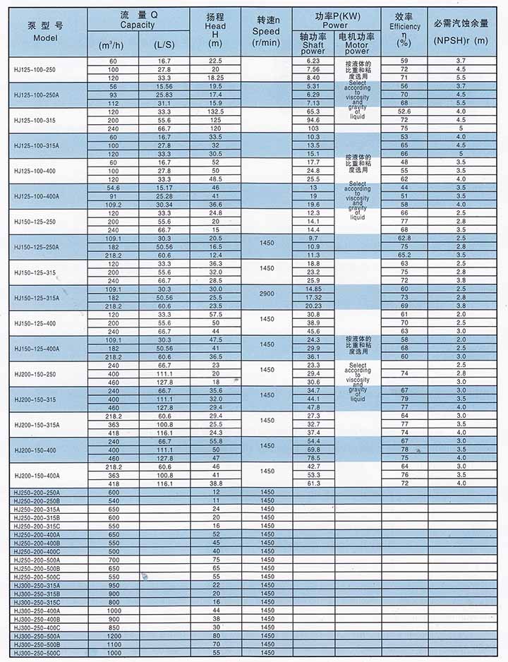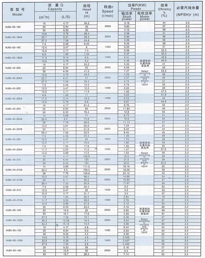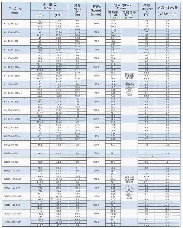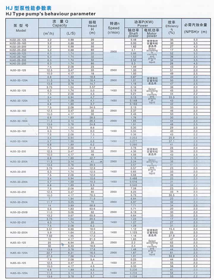 概述: HJ型單級單吸懸臂式化工離心泵是在IH系列泵的基礎(chǔ)上,參照國外技術(shù)并結(jié)合用戶實際使用后而優(yōu)化設(shè)計的新產(chǎn)品,其額定性能和安裝尺寸符合ISO2858標(biāo)準(zhǔn),制造技術(shù)條件符合ISO5199標(biāo)準(zhǔn),主要適用于化工流程中含固量小于50%之內(nèi)的漿液以及含結(jié)晶雜質(zhì)介質(zhì)的輸送。 與IH泵相比,HJ化工泵結(jié)構(gòu)具有以下特點: 1.縮短了葉輪的懸臂,加粗了軸的直徑; 2.非對稱截面的蝸殼、泵殼無口環(huán); 3.采用三只進口軸承; 4.裝有與國外先進的雙端面機械密封或填料密封相似的新型密封。 由于以上結(jié)構(gòu)使該泵有以下優(yōu)越性: 1.可以輸送高粘度或含固體的介質(zhì),這時泵的效率較IH泵高; 2.非對稱截面蝸殼減少了流體的沖擊損失,縮短了泵殼尺寸; 3.增加軸的強度,減少了轉(zhuǎn)子的撓度,因而運行穩(wěn)定、密封壽命長; 4.葉輪螺母與葉輪做成-體,改善了泵的入口條件,提高泵的抗汽蝕性能; 5.先進的軸封形式,使密封效果更佳,減少了泵的泄漏; 6.可以不拆卸泵殼和葉輪的情況下調(diào)節(jié)泵的間隙,減少了維修時間,節(jié)省維修成本。