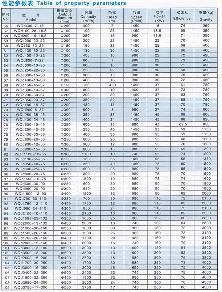 WQ型系列無(wú)堵塞潛水排污泵是根據(jù)九五年國(guó)家專(zhuān)利技術(shù)生產(chǎn)的新型離心泵。該泵在設(shè)計(jì)上綜合地吸收了瑞典科學(xué)的葉輪水力設(shè)計(jì)和西德合理的整體結(jié)構(gòu)、快速的安裝技術(shù),以及日本完整的保護(hù)裝置和先進(jìn)的機(jī)械密封,效率高,能耗少、運(yùn)行可靠。泵的性能、結(jié)構(gòu)、安裝尺寸和技術(shù)要求均符合中華人民共和國(guó)城鄉(xiāng)建設(shè)行業(yè)標(biāo)準(zhǔn),因此在國(guó)內(nèi)排水排污行業(yè)得到了廣泛的應(yīng)用。